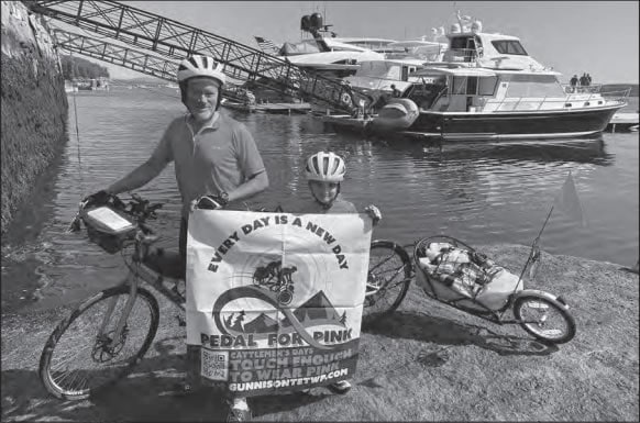 Jennifer is a local pediatrician, and the diagnosis was as much a shock for the Sanderfords as it is for all families touched by cancer. Kevin said after Jennifer underwent a successful surgery in April, she insisted that he and Abby keep their biking plans. Cattlemen’s Days Tough Enough To Wear Pink is a nonprofit in the Gunnison Valley that provides tremendous resources for people who are dealing with a cancer diagnosis, and at that point the Sanderfords decided to partner with Pink.